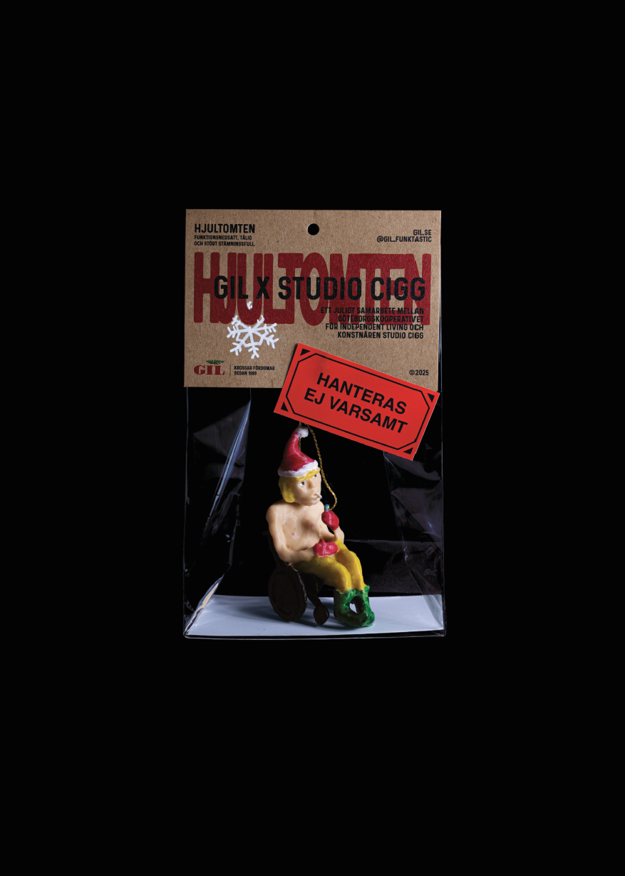 Hjultomten är GIL:s kommentar till just detta fenomen. En julgranskula av plast föreställande en tomte i rullstol. Den är en påminnelse om att man inte behöver tipp tappa på tå kring oss med funktionsnedsättningar.